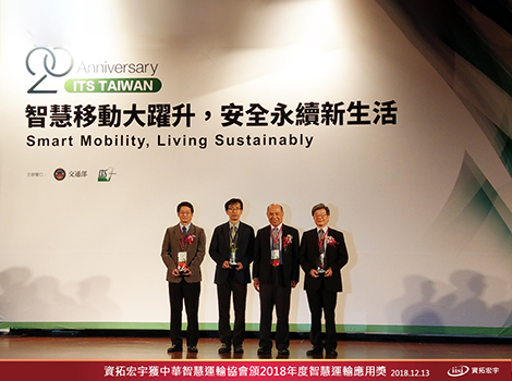 中華智慧運輸協會特別於本年度12月13日假圓山飯店舉辦之「ITS 20週年智慧運輸應用研討會暨成果展示」中公開表揚,同時由協會張永昌理事長親自頒發獎座給資拓宏宇吳裕光副總經理、鼎漢及臺北市政府交通局領獎代表。